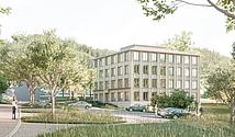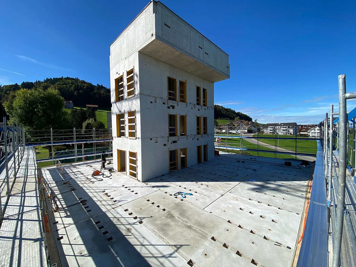 In Herisau im Gebiet Krombach wurde im Herbst 2024 der Rohbau des Besucher- und Therapiezentrums für den Spitalverbund Appenzell Ausserrhoden erstellt.